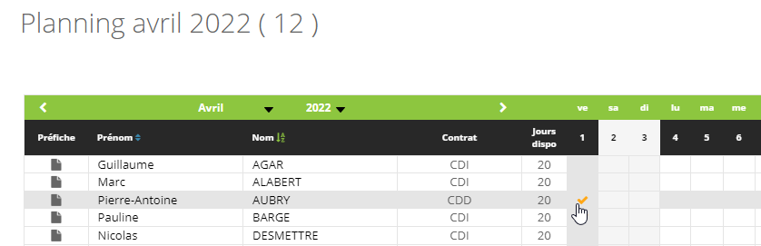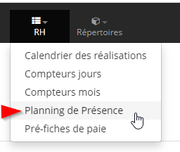 Il faut commencer par le déclaratif du technicien. Rendez-vous dans RH / Planning de présence.