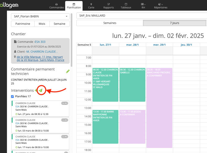 Pour se faire allez dans « Planification » puis sélectionnez votre chantier.