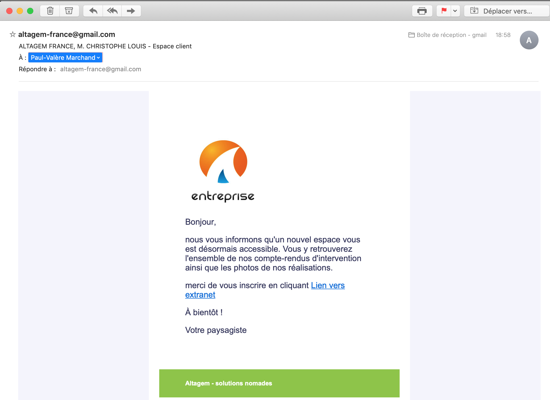 Une fois que vous avez ouvert l’espace pour votre client (voir cet article), celui-ci va pouvoir définir son propre mot de passe en cliquant sur le lien contenu dans le mail.