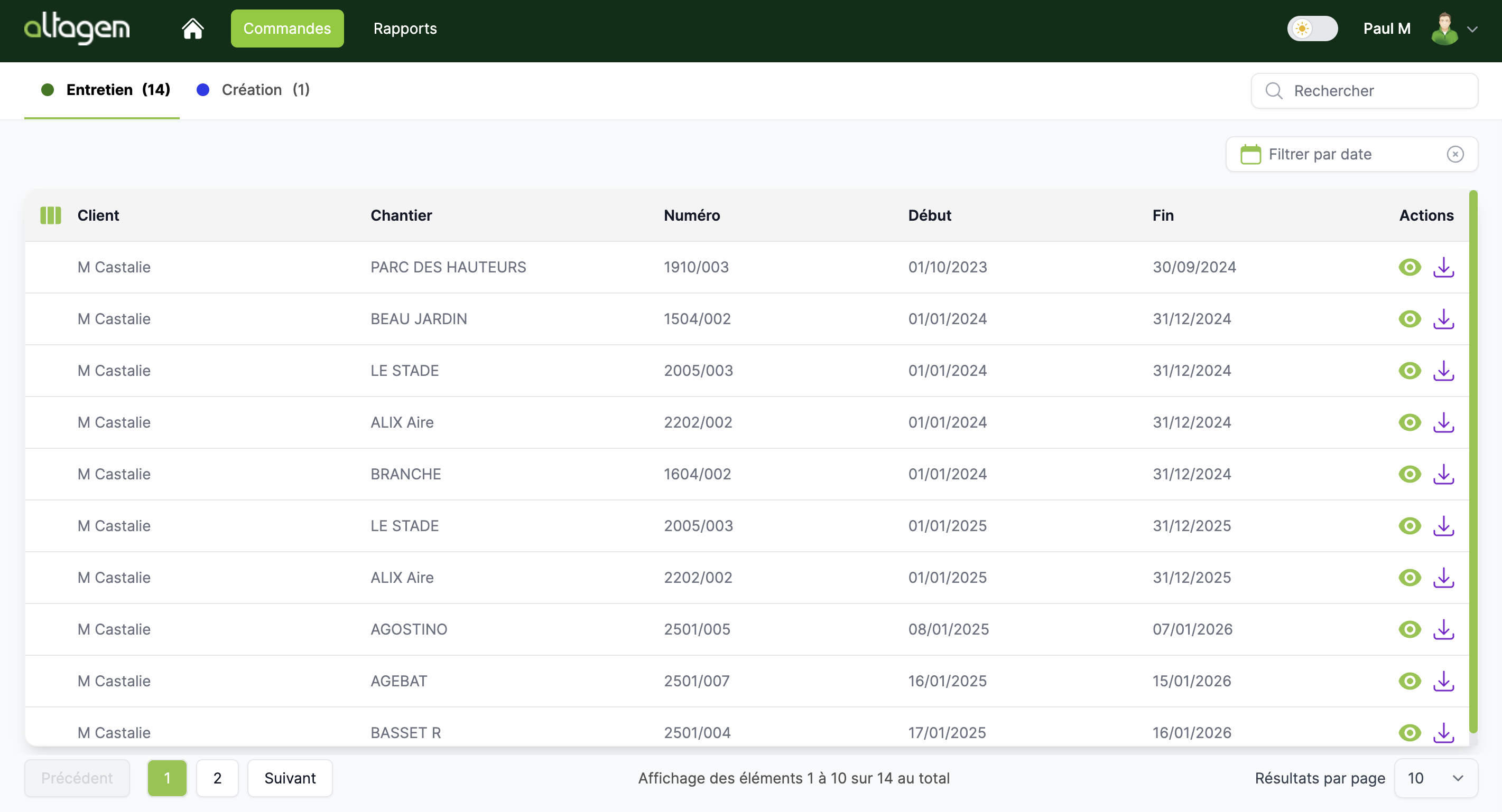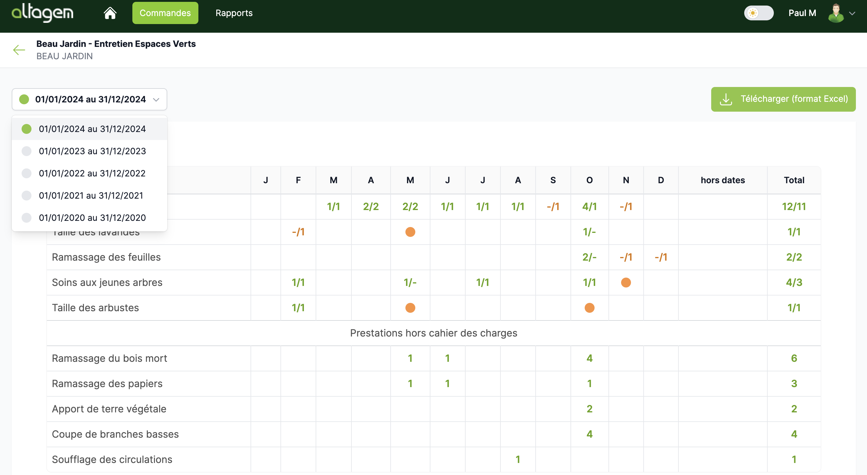 En sélectionnant une commande, il visualisera toutes les prestations réalisées mois par mois.