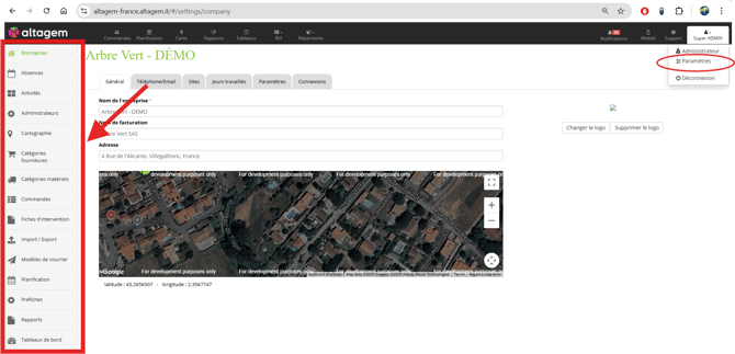 - Réorganisation des paramètres : Les éléments du menu Paramètres sont désormais affichés dans le bon ordre en français. L’affichage commence par Entreprise, suivi des autres rubriques classées par ordre alphabétique. Ceci permet de retrouver plus facilement chaque section.