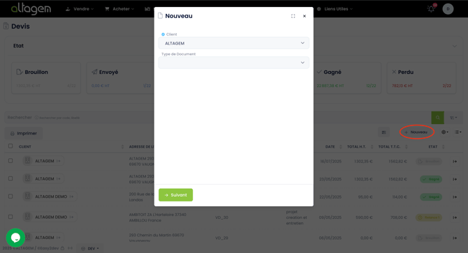 2. Cliquez sur nouveau pour créer un nouveau devis.