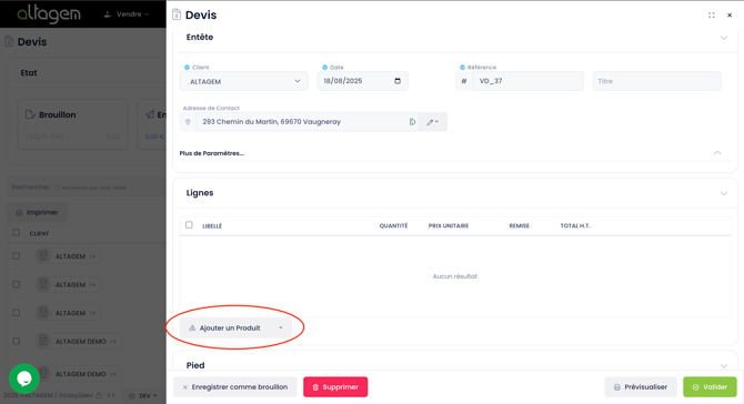 3. Ajoutez un ou plusieurs produits à votre devis, les prestations sont considérées comme des produits.