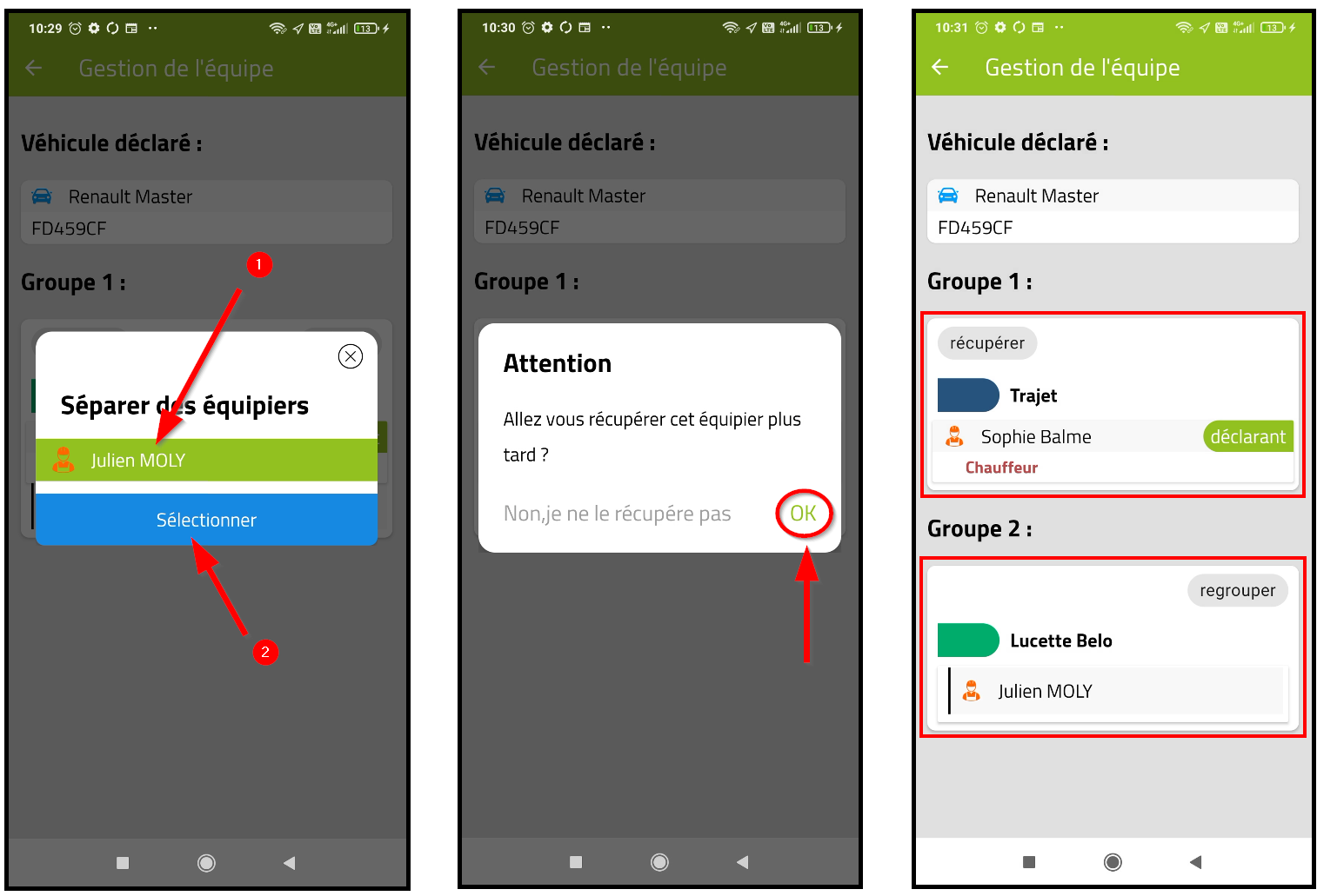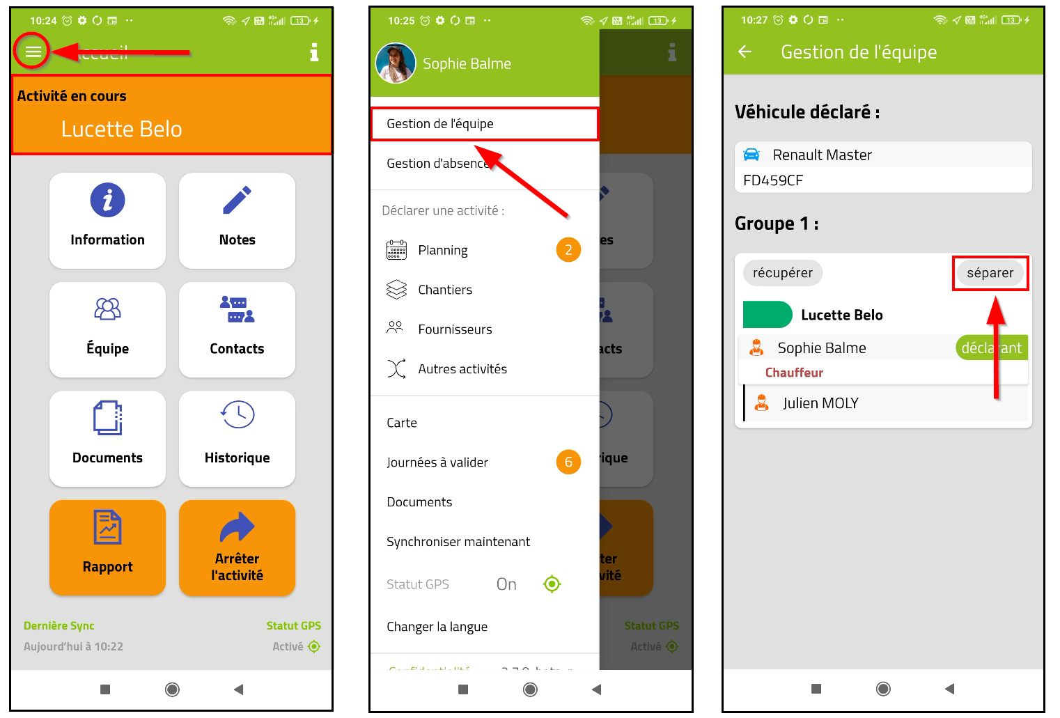 – Dans le menu principale, sélectionner « Gestion d’équipe » puis cliquer sur « Séparer »
