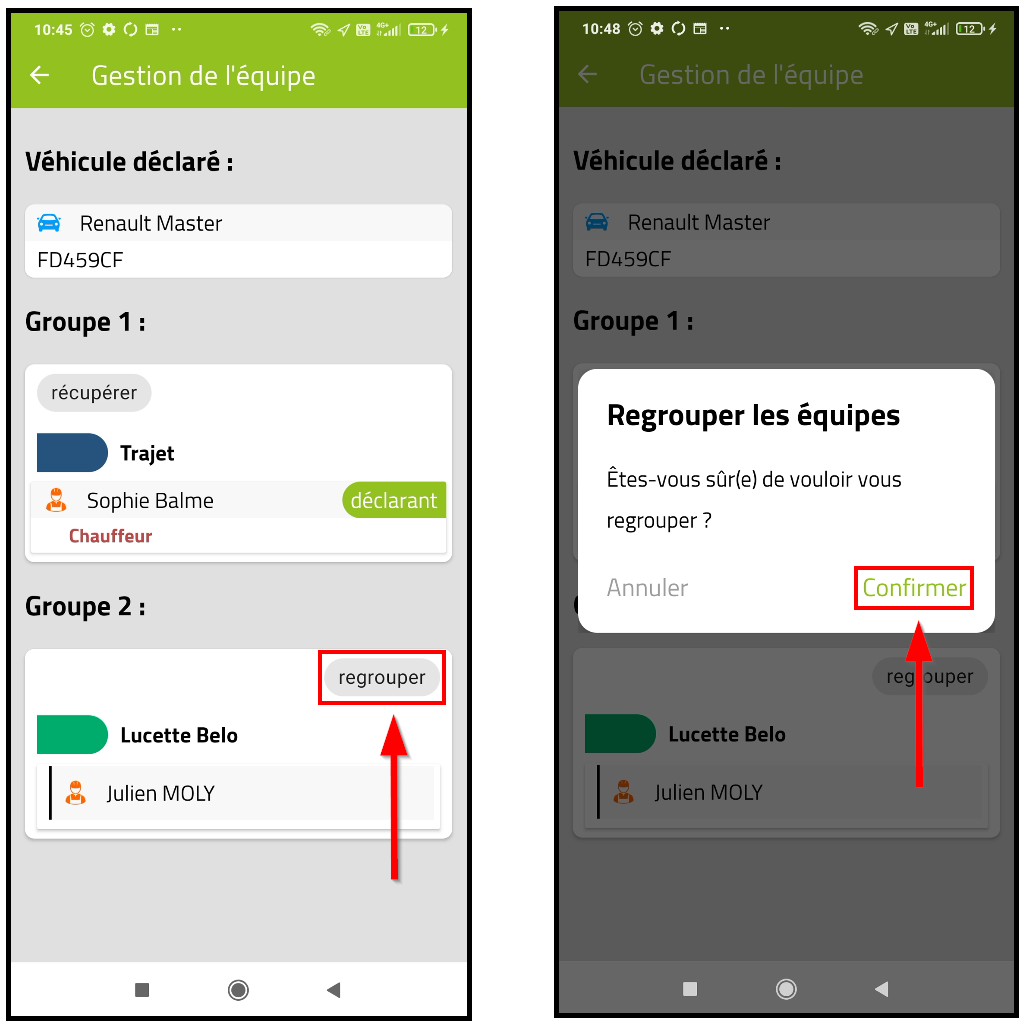 – Pour déclarer la fin de la séparation temporaire cliquer Sur « regrouper » puis « Confirmer »